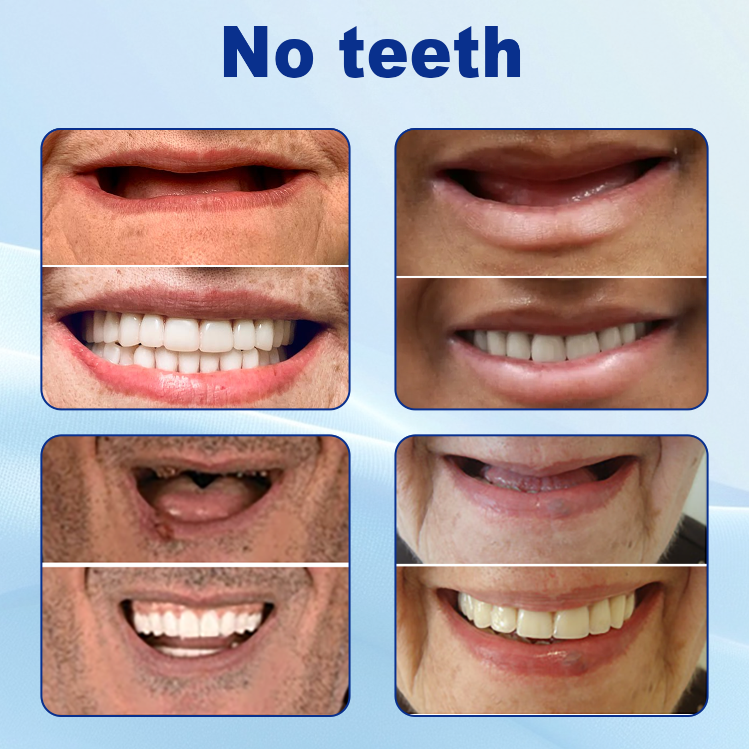 Transform your smile instantly with our innovative denture set. Experience the satisfaction of achieving a flawless, customized fit right away. Our denture set eliminates the discomfort of poorly fitting dentures, offering you a snug and natural feel that makes your dentures truly feel like a part of your mouth.