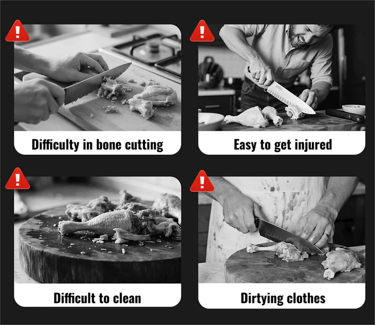 • Premium Stainless Steel Blades – Our blades are forged from high-quality stainless steel, ensuring long-lasting sharpness that effortlessly cuts through meat, vegetables, herbs, and even bones.