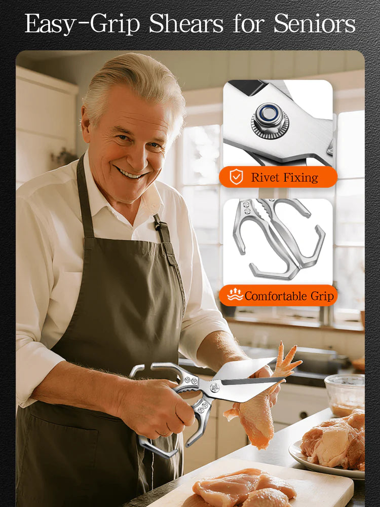 Featuring a non-slip, anti-skid design, these shears allow you to cut through tough ingredients safely and effortlessly, giving you complete control over every slice, chop, or trim. Experience the joy of cooking with precision, comfort, and confidence.